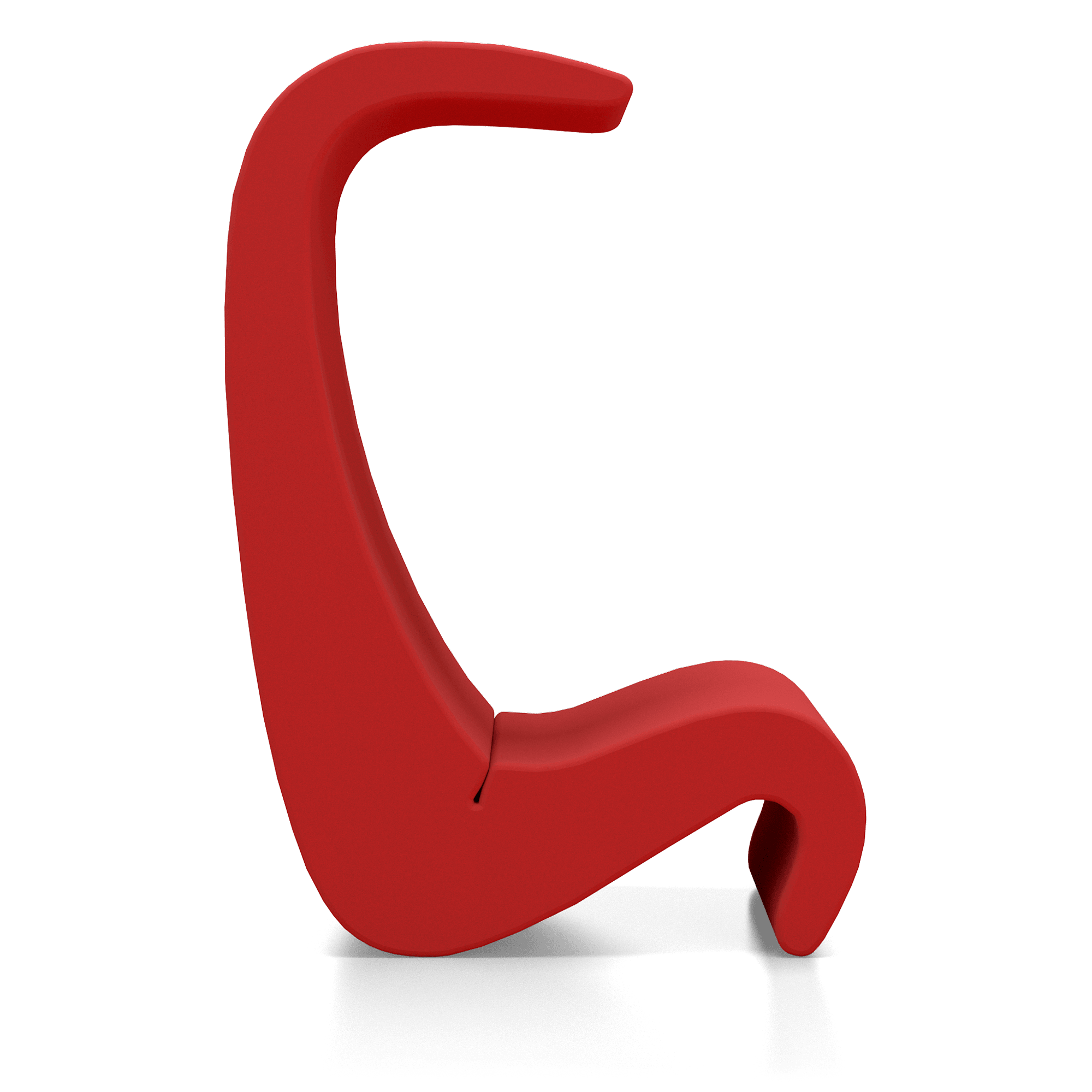 Flexible backrest that curves over the head of the sitter, forming a sculptural canopy. This striking accent gives the chair a sense of shelter and seclusion.